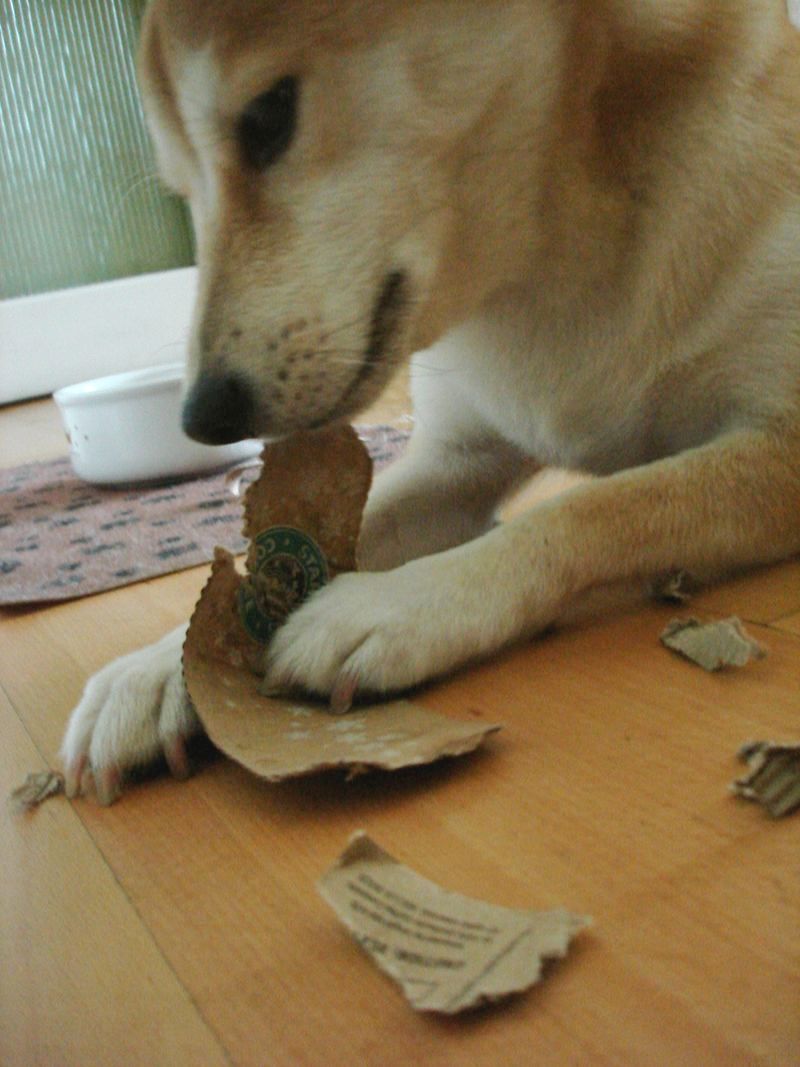 This time, it's special because it's from Japan. Yeah right! Shiba toys don't have to be expensive, if you don't mind it being for single use only - and if you don't mind sweeping up bits and pieces when she's done.